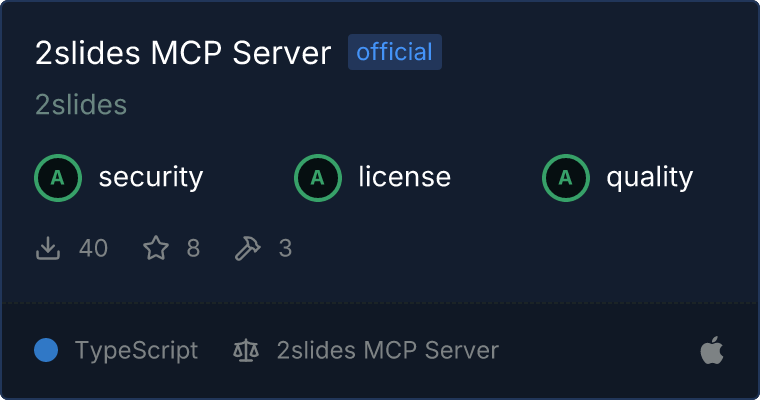 curl -X GET 'https://glama.ai/api/mcp/v1/servers/2slides/mcp-2slides'