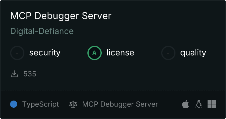 curl -X GET 'https://glama.ai/api/mcp/v1/servers/Digital-Defiance/mcp-debugger-server'