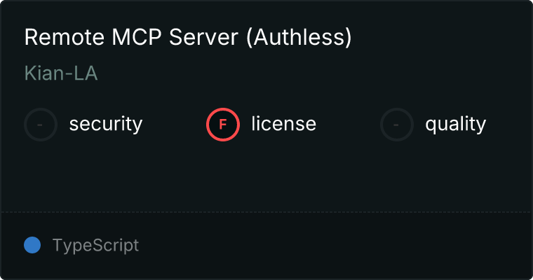 curl -X GET 'https://glama.ai/api/mcp/v1/servers/Kian-LA/remote-mcp-server-authless'
