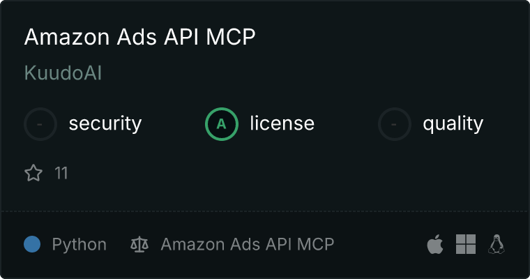 curl -X GET 'https://glama.ai/api/mcp/v1/servers/KuudoAI/amazon_ads_mcp'