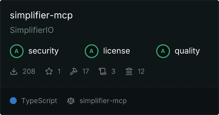 curl -X GET 'https://glama.ai/api/mcp/v1/servers/SimplifierIO/simplifier-mcp'