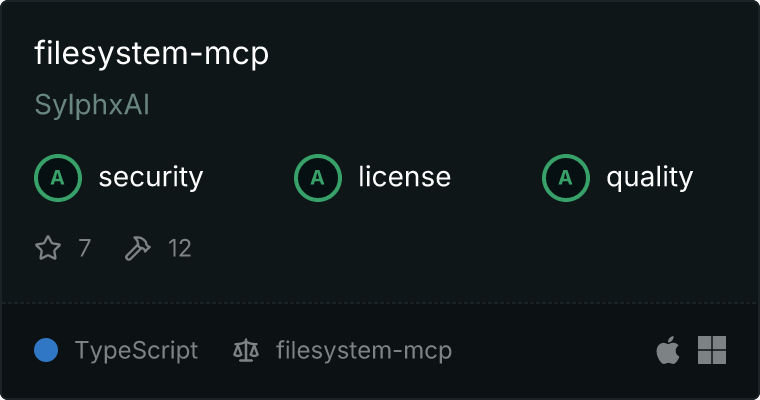 Our directory badge helps users to quickly assess server capabilities, safety, and instructions for installing the server.