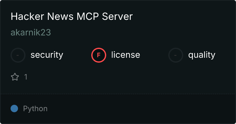 curl -X GET 'https://glama.ai/api/mcp/v1/servers/akarnik23/mcp-hackernews'