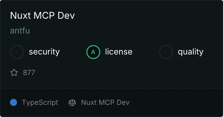 curl -X GET 'https://glama.ai/api/mcp/v1/servers/antfu/nuxt-mcp-dev'
