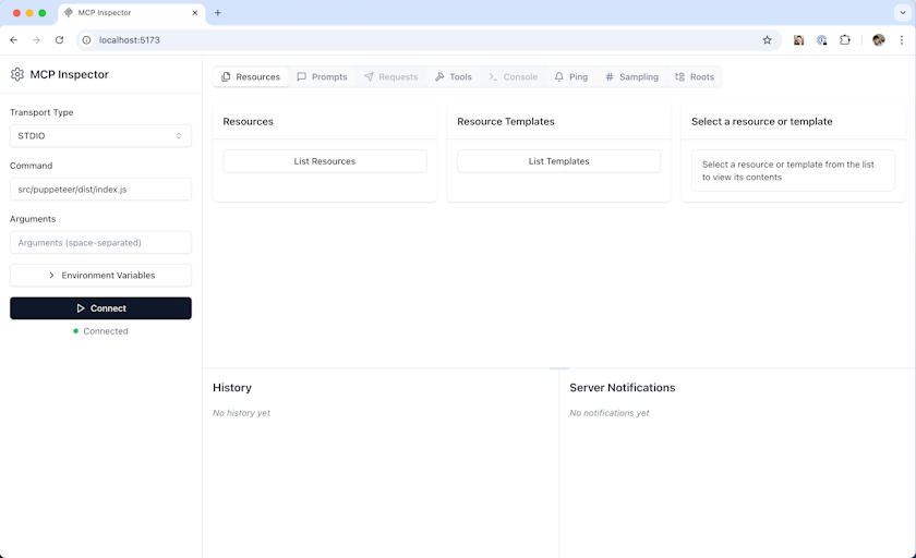 ### [](https://modelcontextprotocol.io/legacy/tools/inspector\#server-connection-pane) Server connection pane