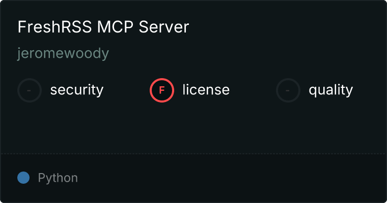 curl -X GET 'https://glama.ai/api/mcp/v1/servers/jeromewoody/freshrss-mcp'