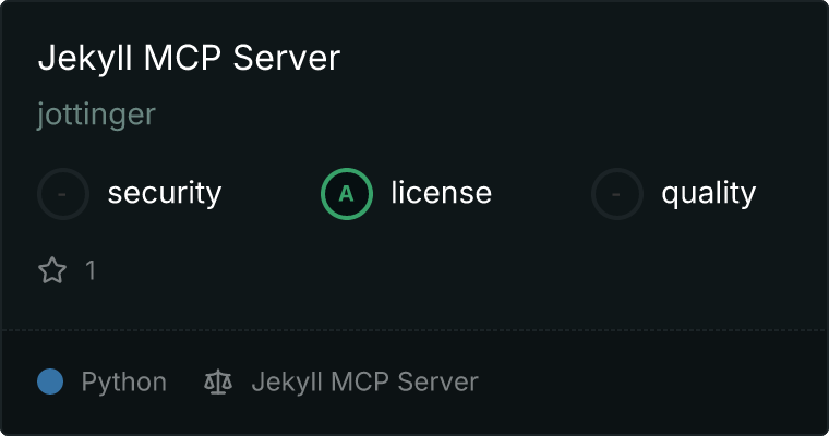 curl -X GET 'https://glama.ai/api/mcp/v1/servers/jottinger/jekyll-mcp-server'