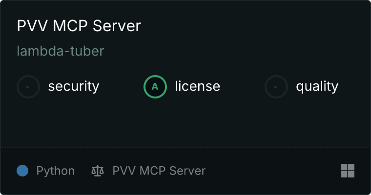 curl -X GET 'https://glama.ai/api/mcp/v1/servers/lambda-tuber/pvv-mcp-server'