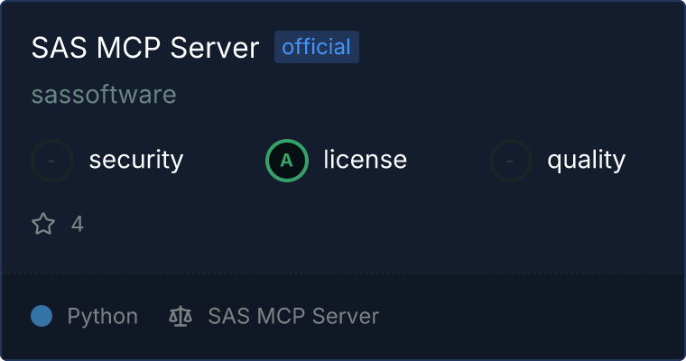 curl -X GET 'https://glama.ai/api/mcp/v1/servers/sassoftware/sas-mcp-server'