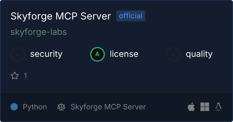 curl -X GET 'https://glama.ai/api/mcp/v1/servers/skyforge-labs/skyforge-mcp'